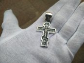 Depicted: The crucifixion of Christ. Prayer "May God be resurrected". Orthodox cross.Length: 4.3 cm